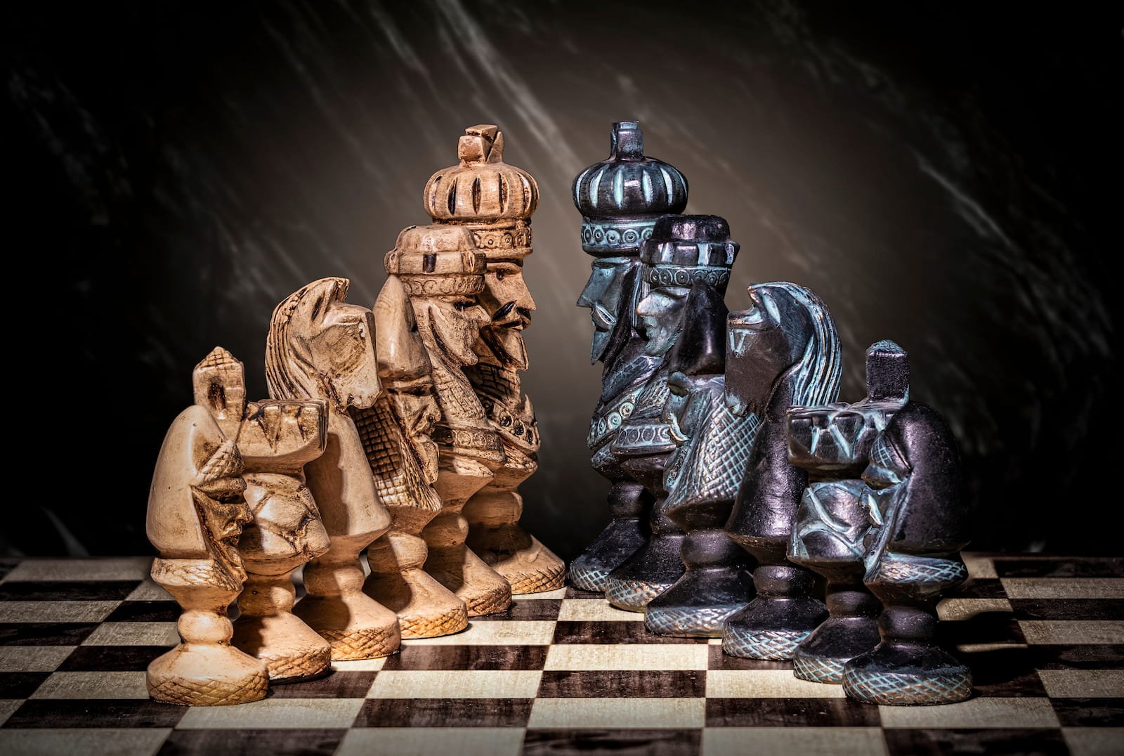 - Custom sculpted chessmen
